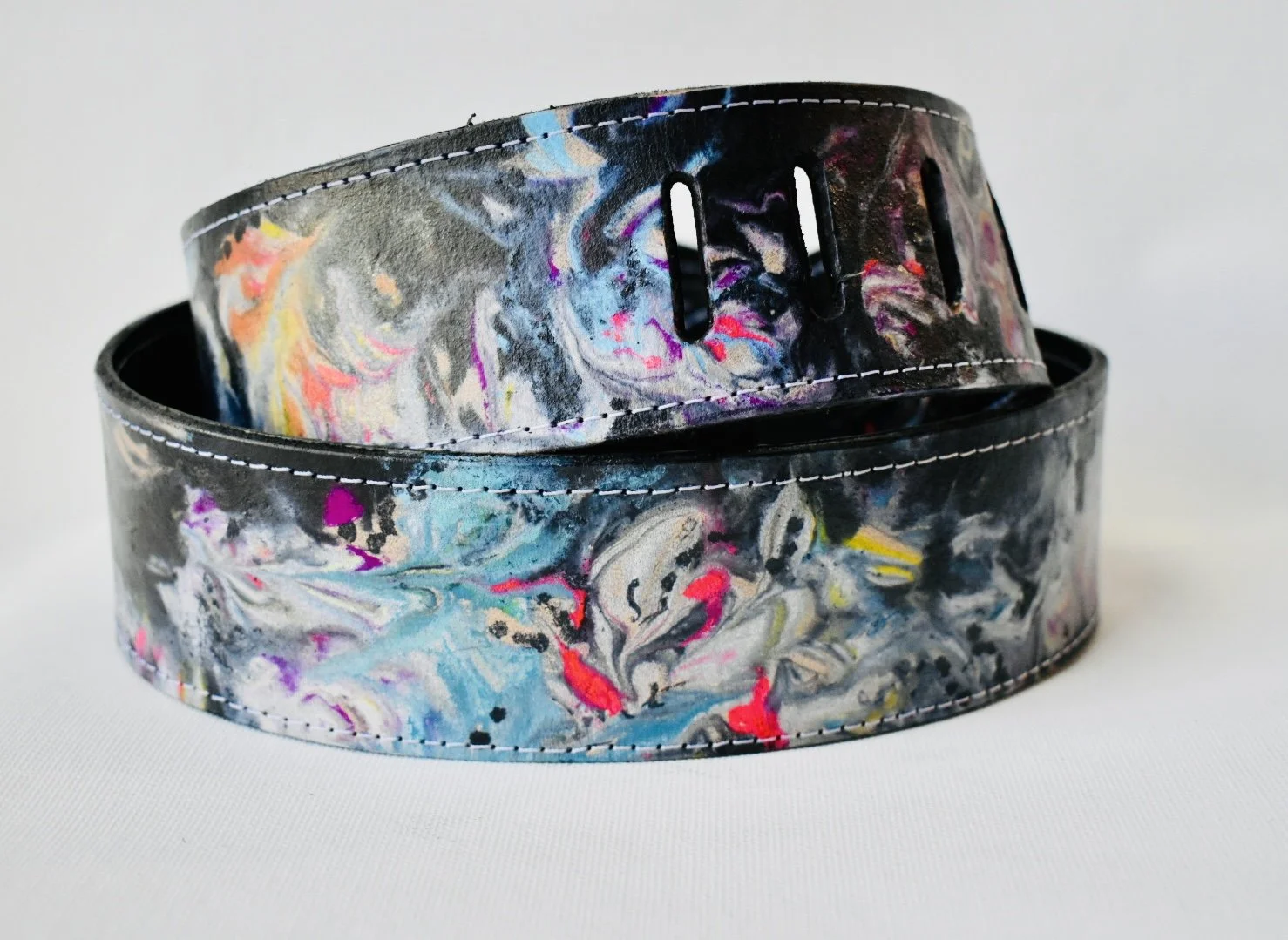 The piece starts as a blank canvas of veg-tan leather. Hand cut into the straps and shapes needed before the hand dyeing process. Not to be too dramatic but, I love to DYE!